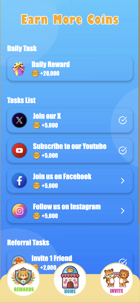 A Tamagotchi-style Telegram Minigame where players manage a lion cub’s needs (food, sleep, gym, hygiene) to earn rewards, including features like Daily Rewards, Referrals and much more …